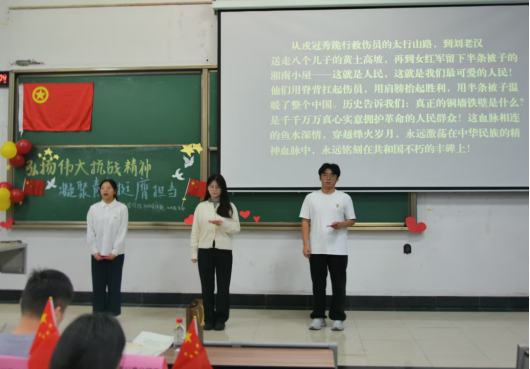 诗朗诵《铁血忠魂》以饱含深情的语言,缅怀了“狼牙山五壮士”等为民族解放事业壮烈牺牲的革命先烈,他们的英雄事迹震撼人心、催人奋进。紧接着,《保卫黄河》的磅礴合唱响彻全场,唱出了中华儿女不屈不挠、奋勇向前的豪迈气概,将活动推向高潮。