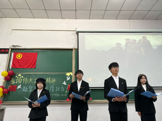 2025年10月29日下午15点,纪检监察学院团总支以“弘扬伟大抗战精神 凝聚青春挺膺担当”为主题,在狮子山校区七教112教室隆重举办校级团组织生活观摩活动。活动通过情景演绎、故事讲述、合唱礼赞等多元形式,引领青年学子在烽火岁月的追忆中感悟初心使命,在纪律精神的传承中凝聚奋进力量。