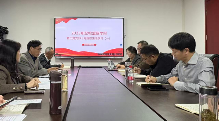 2025年10月22日下午,纪检监察学院教工党支部在501会议室召开10月份组织生活学习会,专题学习习近平总书记在庆祝中华人民共和国成立76周年招待会上的重要讲话精神。会议由教工党支部书记王立桩主持,党总支书记毛张燕领学并作工作部署,全体党员参加学习。