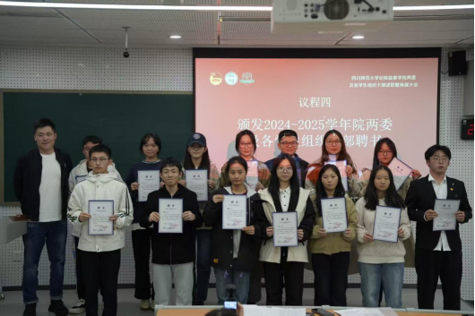 大会现场举行了聘书颁发仪式,梁晨晨为上届学生干部逐一颁发聘书,表彰他们的辛勤工作。随后,李雯雯、张维杰、王棋作《纪检监察学院两委及各学生组织工作框架及职责职能》报告,从组织架构、分工流程、考核机制等方面详细解读,为新学期工作规范化开展奠定基础。