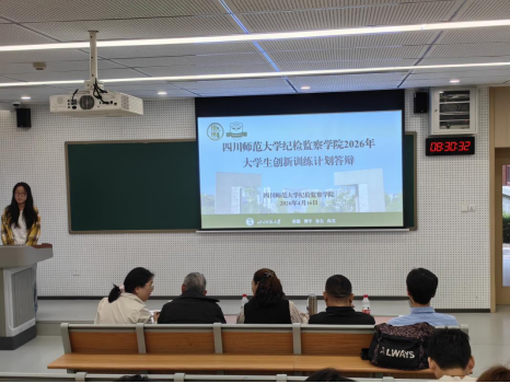 为选拔优秀大学生创新创业训练计划项目,激发学生科研创新热情,2026年4月16日上午,纪检监察学院大创项目推优答辩会在第二教学楼101教室顺利开展。学院副院长刘勤、向玉成、龚学德、王杰、马黎五位老师担任评委。